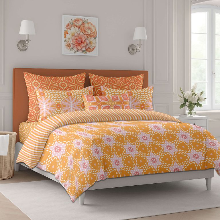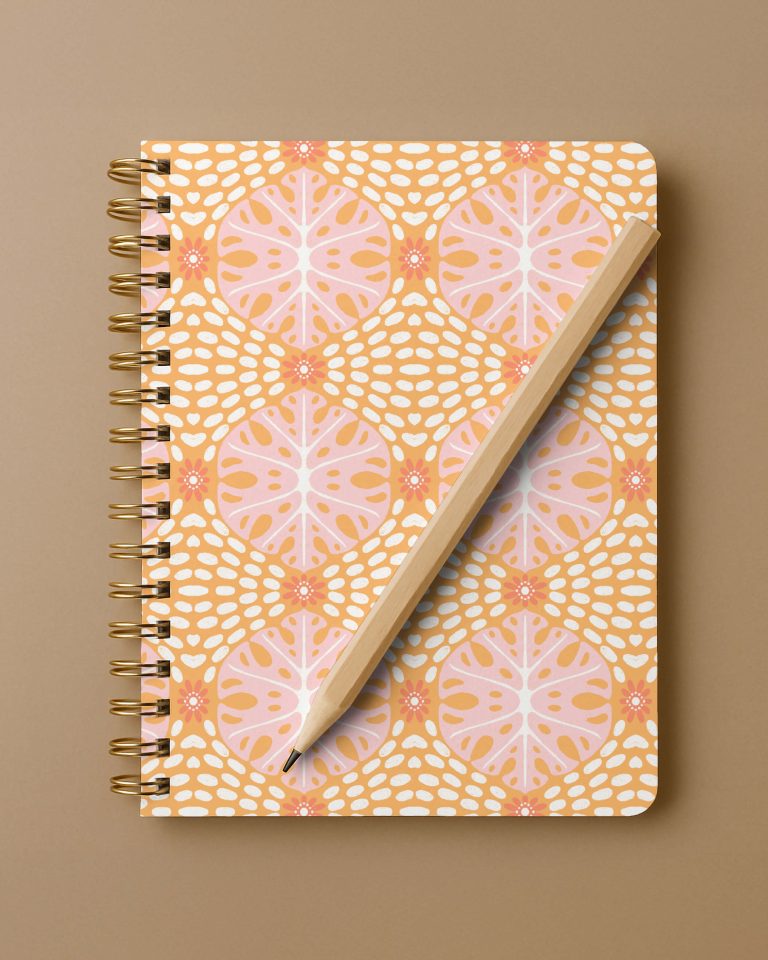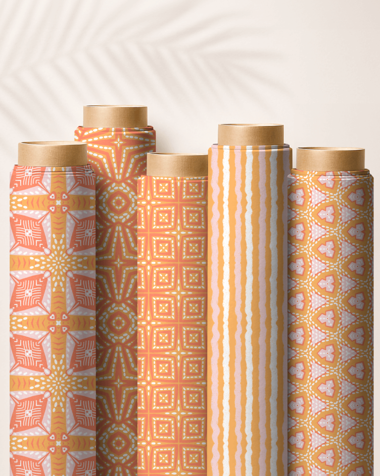Hand-drawn boho geometrics in sunlit orange and soft pink, inspired by Moroccan tiles and fresh spring warmth. You can buy this collection or individual patterns on my Spoonflower shop.