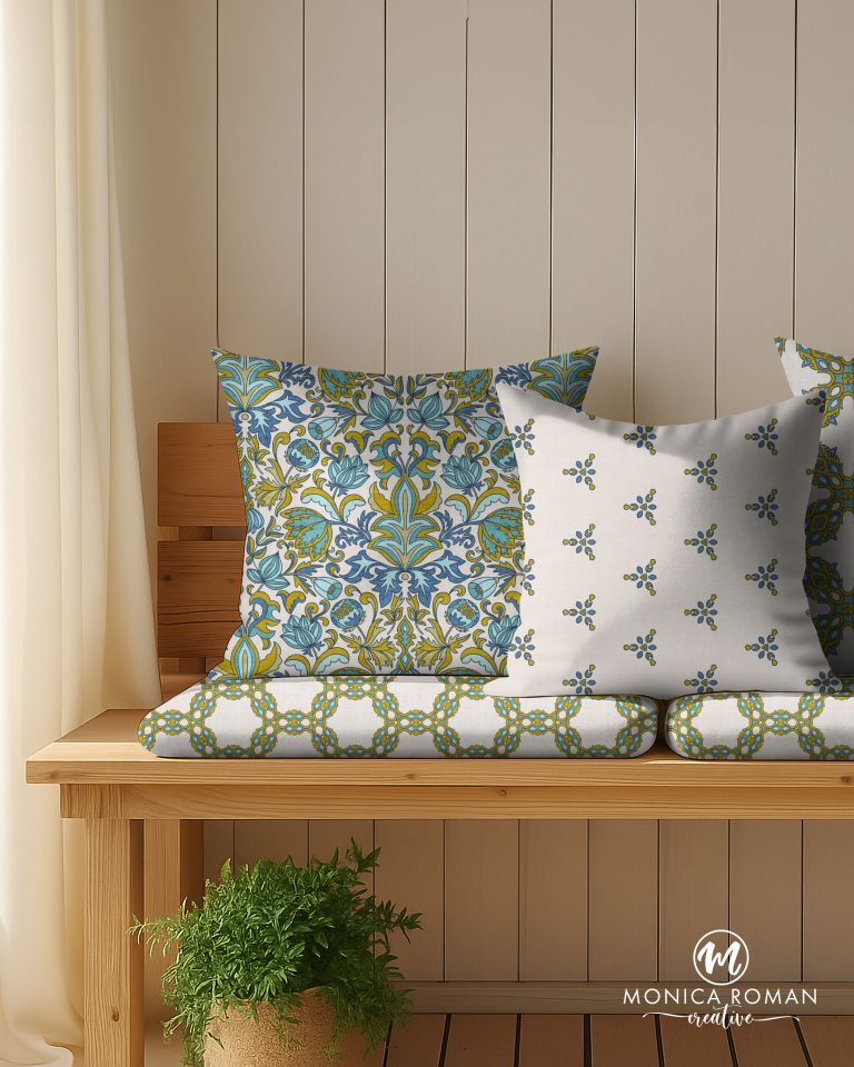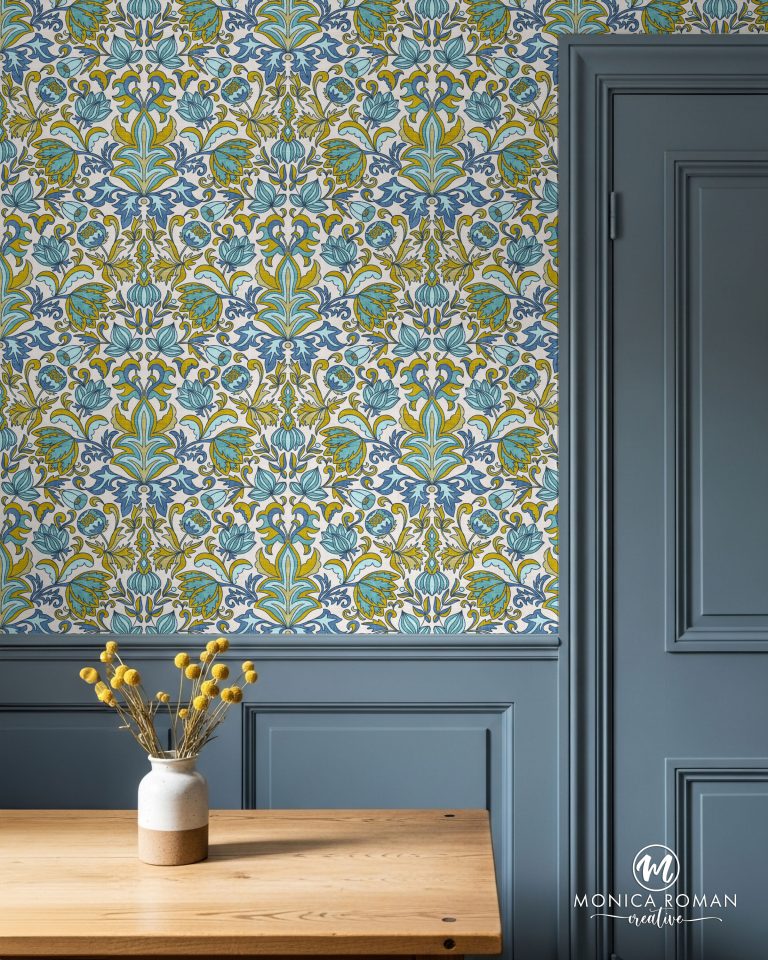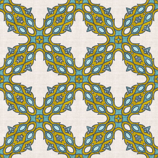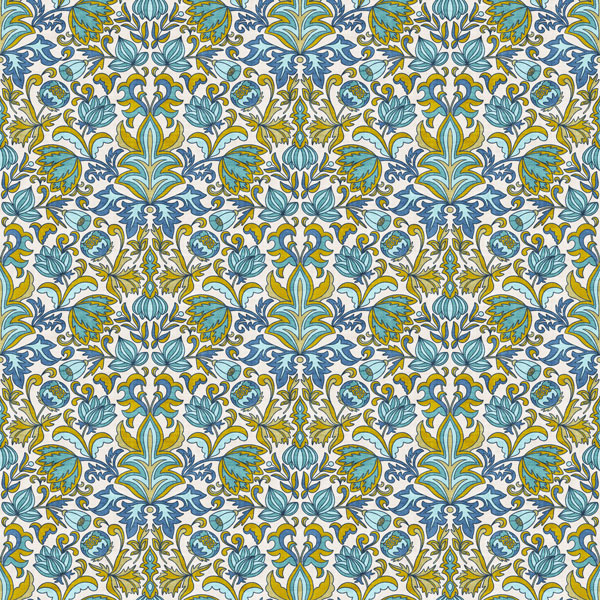 Vintage textural floral & geometric collection in teal turquoise olive blue cream