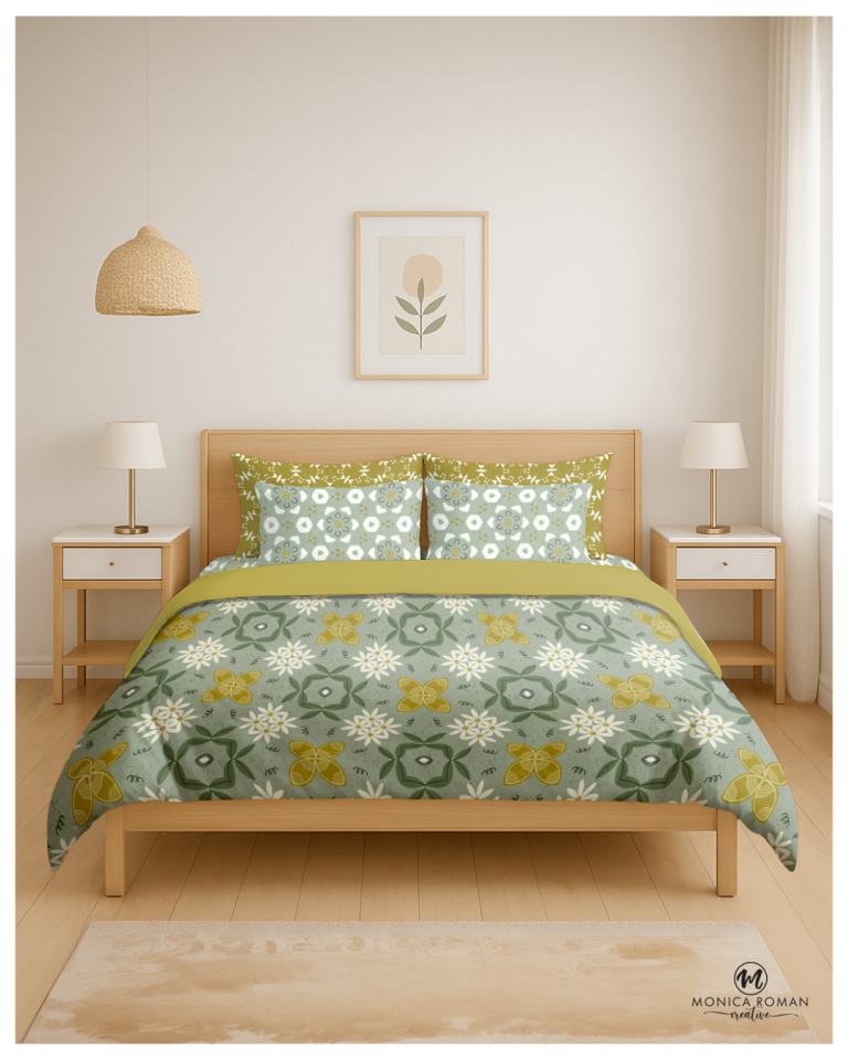 A vintage-meets-modern collection in sage, cream, and mustard with florals, medallions, and geometric loops for timeless, earthy appeal.